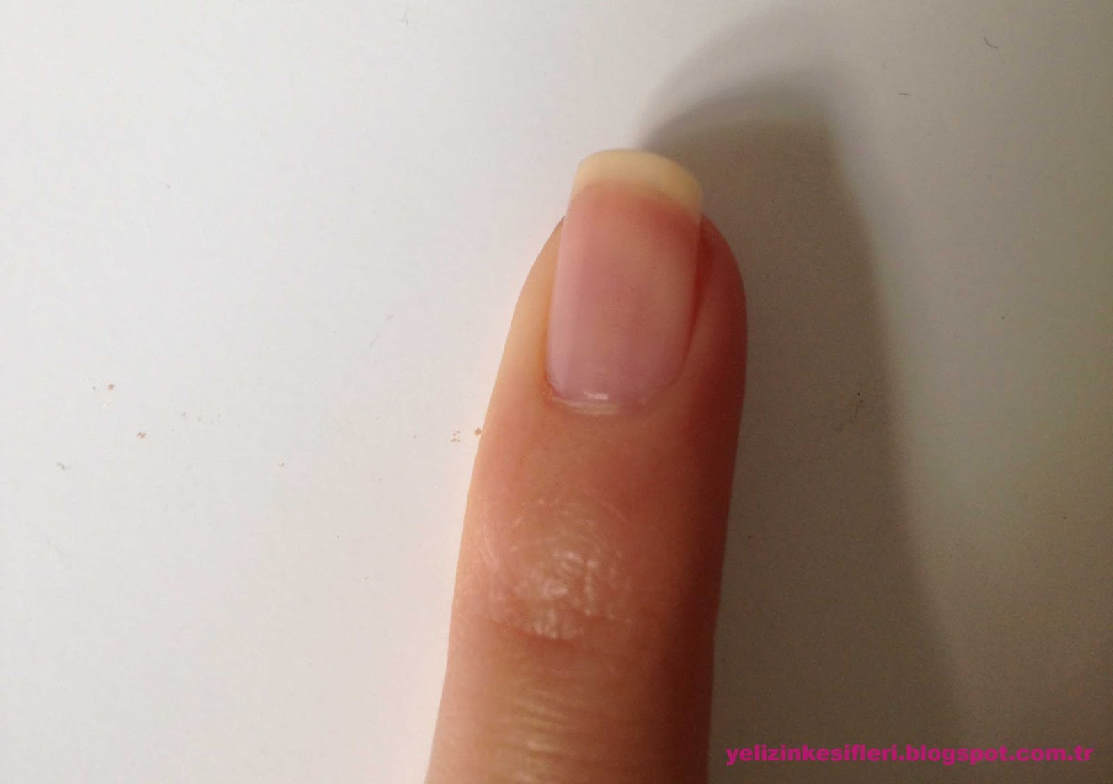 Clinique ojeye gelince kutunun üzerindeki renk gibi durmuyor resimde gördüğünüz gibi oldukça açık bir pembe geldi. Çok belli olmayan bir renk ama ben beğendim. Genellikle açık renk ojeleri kullanmayı tercih ederim. Fırçasından dolayı sürülmesi kolay, çabuk kuruyor ve rahatsız edici bir kokusu yok. Bence French yapılırken kullanılabilecek güzel bir taban rengi de olabilir. Bu arada ojenin ismi Clinique Sweet Touch.